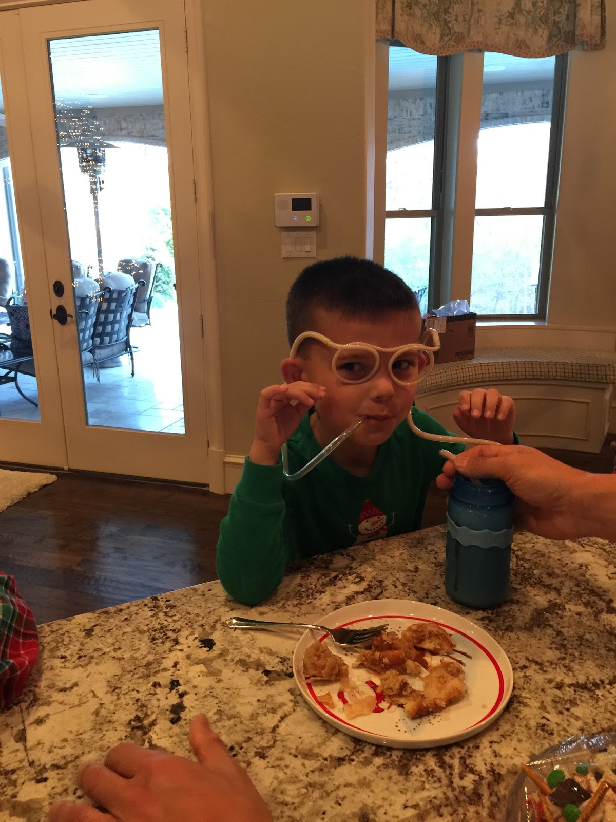 Sean and Catherine gave him this straw, which of course, he needed to try out with breakfast!
