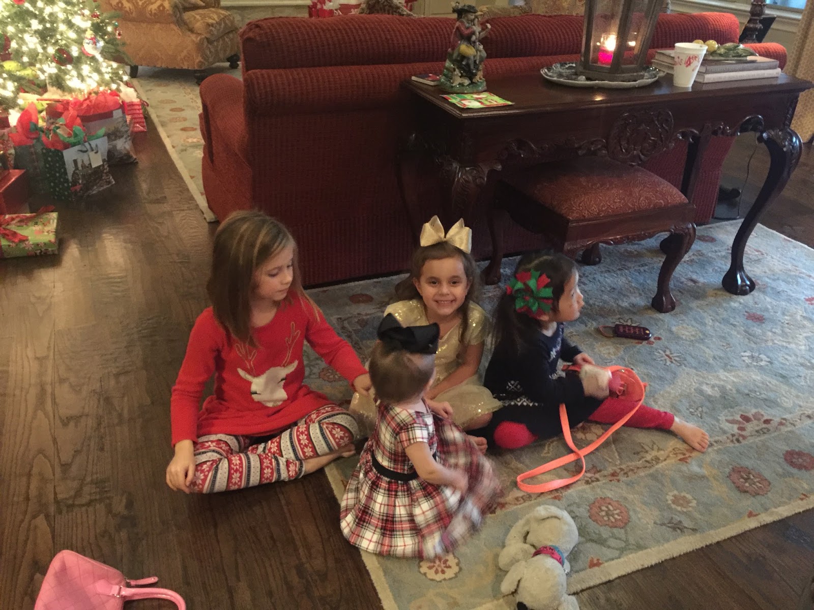 Smith sleeping on the chairs is hysterical! He's the cutest boy ever! Love your Christmas pics! Happy 4th day of Christmas to y'all! Keep the celebration going!