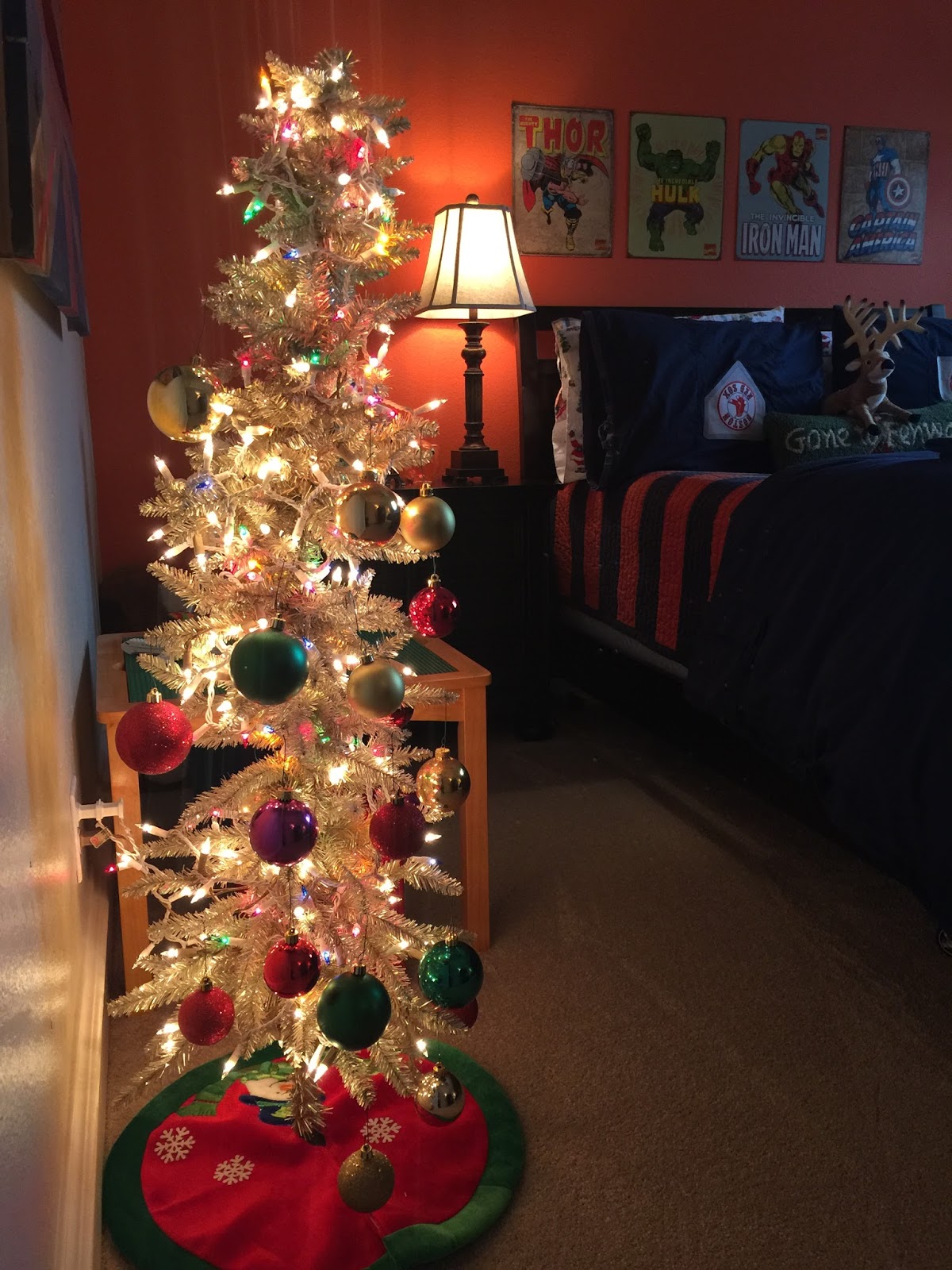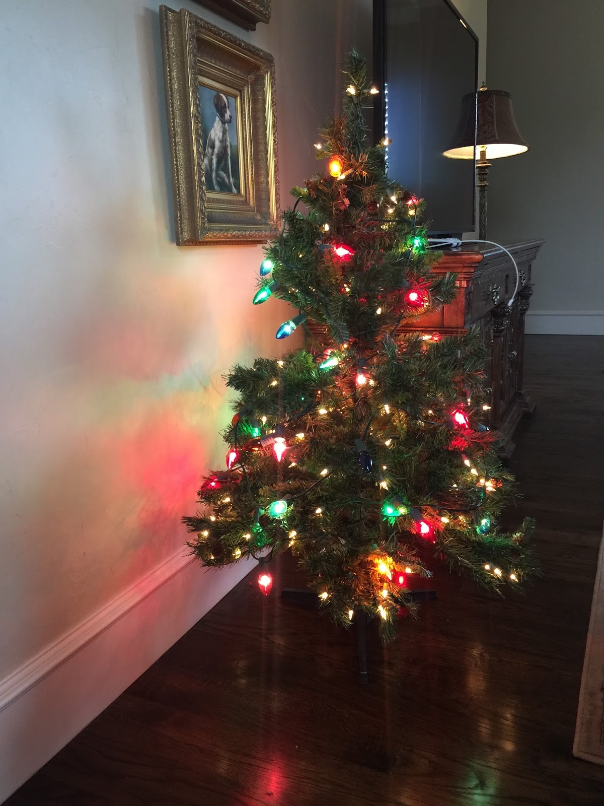 Smith really wanted to hang all of his ornaments by himself without any help. I gave him the boxes of ornaments and hooks and he did it all. Notice that the ornaments only go “Smith high”. ;).