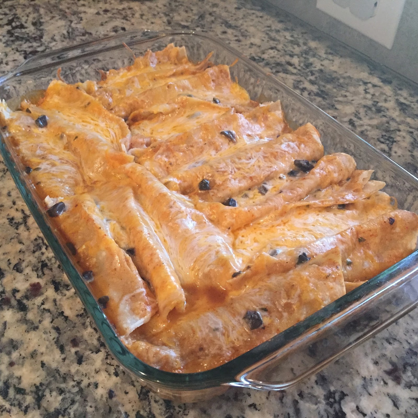 Pour this mixture over enchiladas in the pan, Sprinkle remaining cheese over