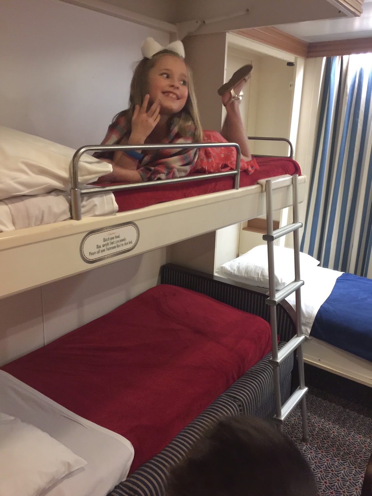 And then after the show, we headed back to our cabin and our attendant had turned out the beds to sleep five. Most cruise lines do not accommodate five to a room…but DCL does. While we were at the show, they transformed our sitting area into three beds. This was PERFECT! The kiddos each had their own defined space for sleeping. Don’t get me wrong, cabins aren’t huge but I felt like they comfortably slept all of us.