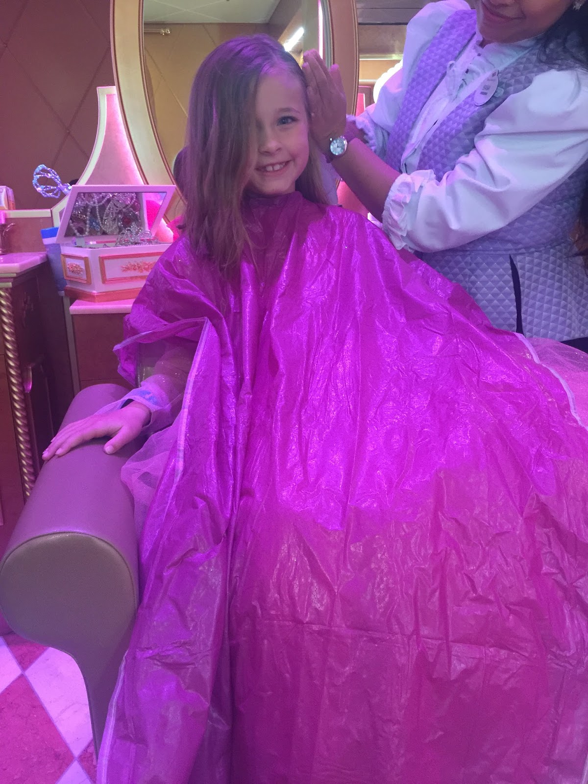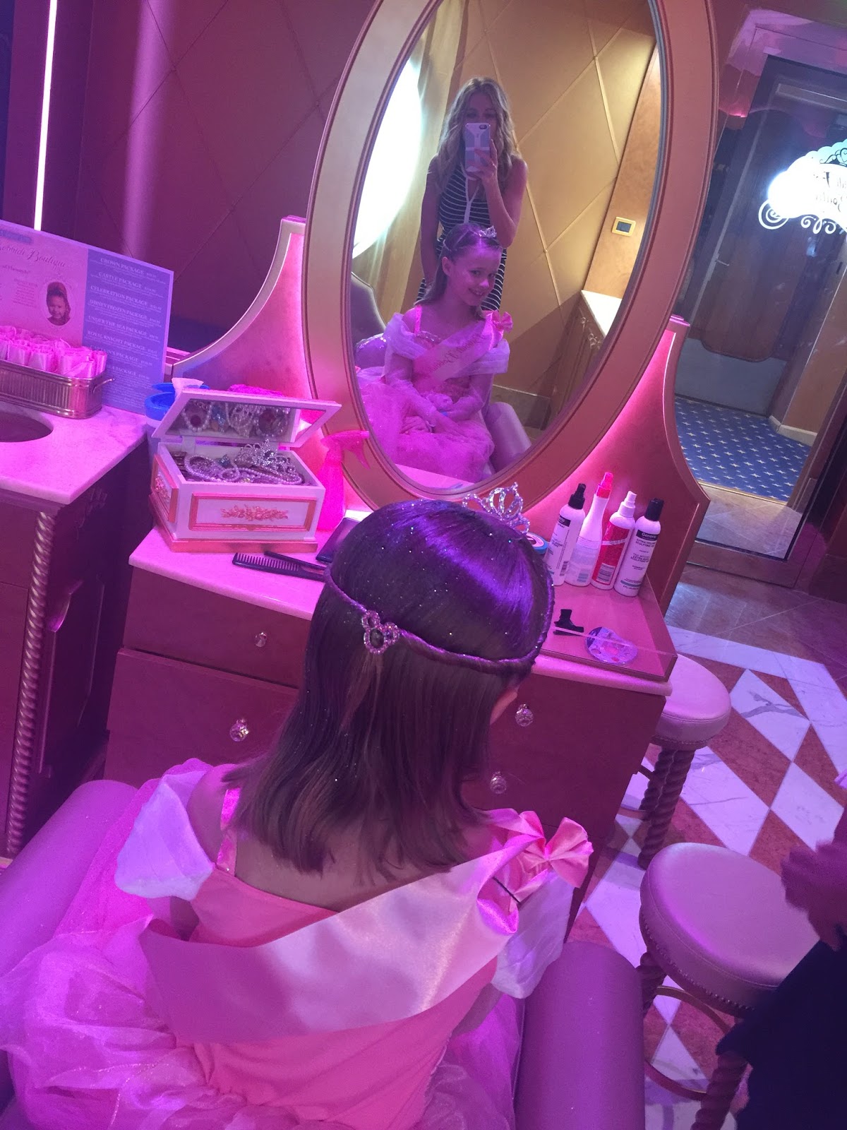 After we were done risking death sliding, the guys took the boys and the two littles to see Zootopia on board the ship (advantage Disney Cruise…you get to see the brand new movies in their theater for FREE!) while Erika and I took the two big girls to Bibbidi Bobbidi Boutique for their princess makeovers.