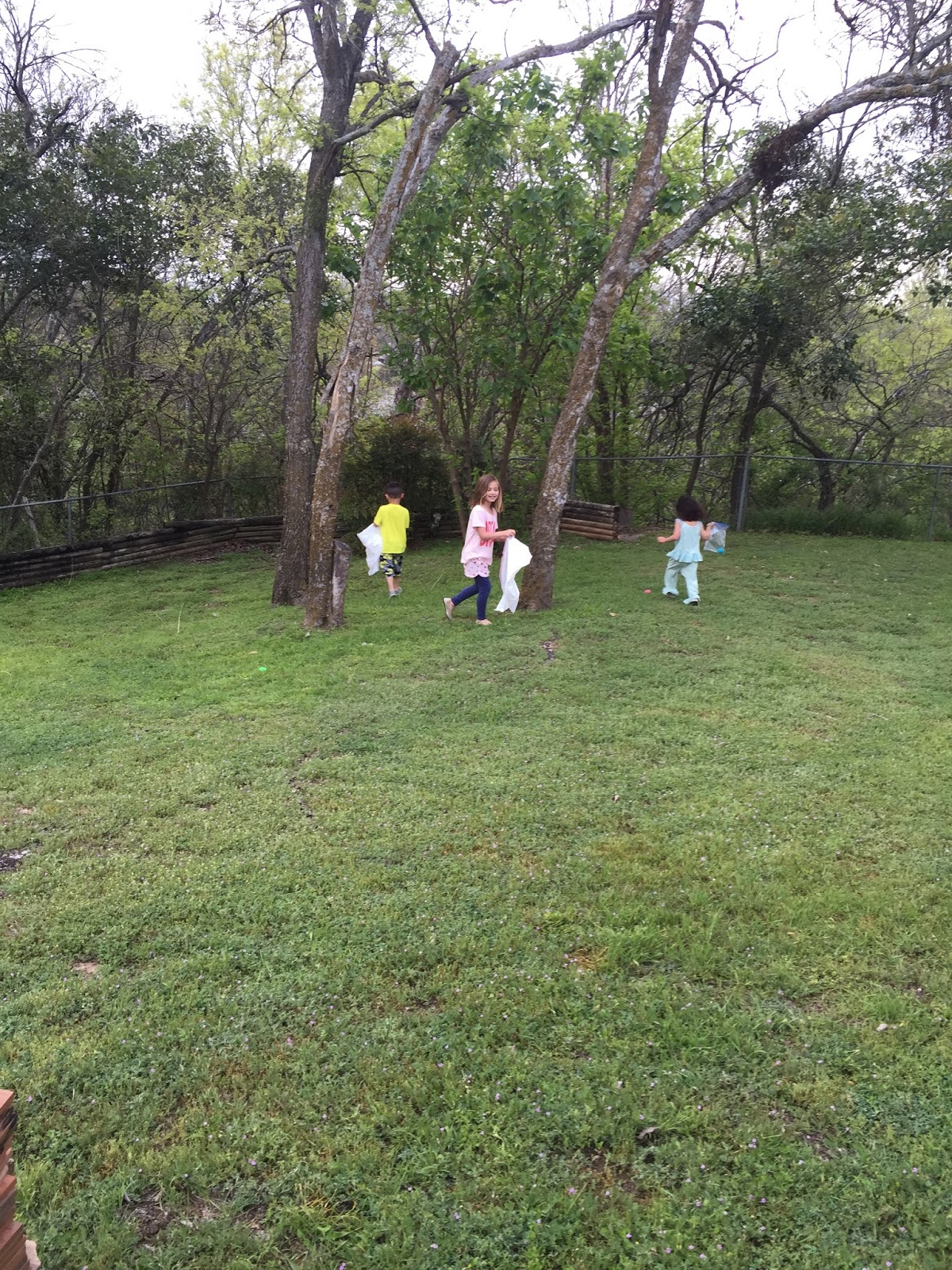 We decided to have a little egg hunt for these three…that being said, we forgot baskets, so they got trash bags. #keepingitclassy