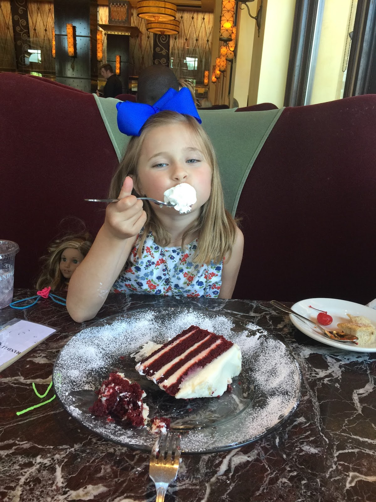 We ate lunch and then she asked for cake for dessert. Who am I to deny red velvet cake?!?!