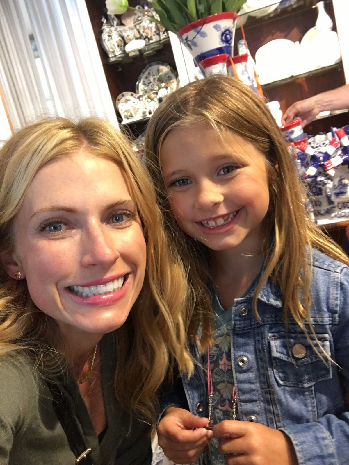 The last two times we’ve been in Amsterdam (2010 and 2012), I’ve bought these little houses to sit on the shelves in my office by Royal Delft. Here we are in the same shop buying three more. I love having little trinkets from trips around my house.