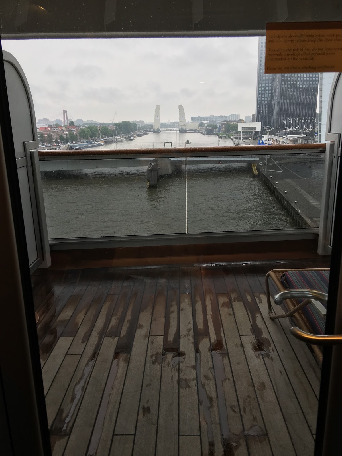On one of the balconies leaving Rotterdam. It took about 3 hours to leave the Rotterdam port because it was so large (one of the largest ports in the world!). We watched with binoculars as the Netherlands went by. Next stop, the fjords!