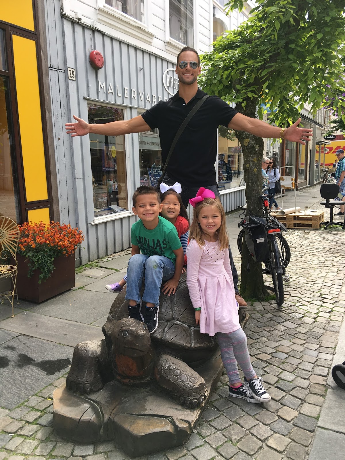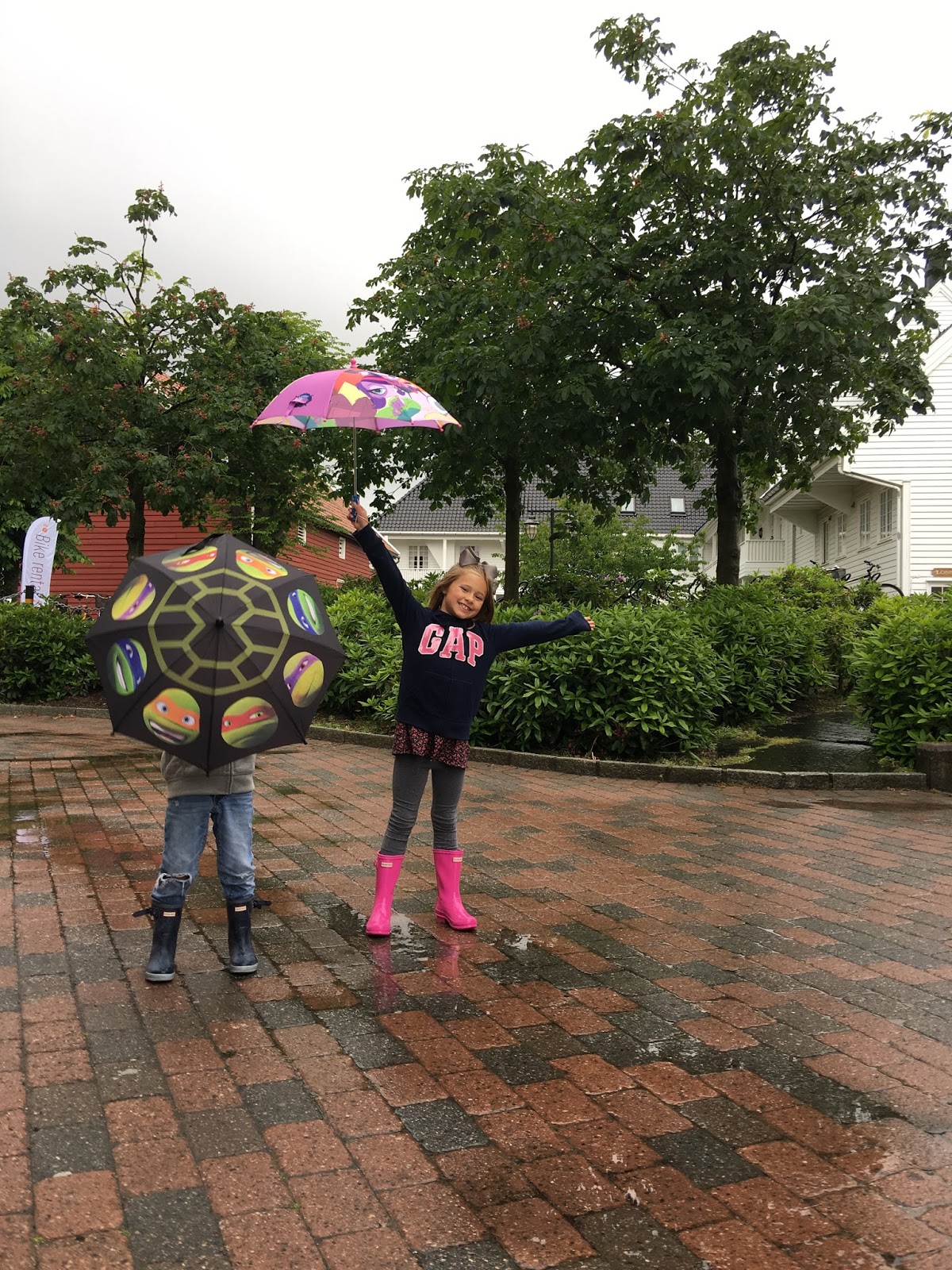 So…we had big plans for our day in Kristiansand, Norway…but due to the rain, we had to improvise. We were going to visit their zoo and rent bikes to ride. We had been so pumped about both of these activities…but because it was raining, they were both a no-go. When we got off the ship, we talked to the kids about our day and Smith said, “If you let us jump in puddles all day and get all wet, then we’ll have the best day ever.”. So…that’s what they did. They jumped. And jumped. And jumped. And were soaking wet. And they had the BEST time. Who needs the zoo and bikes when you have puddles???