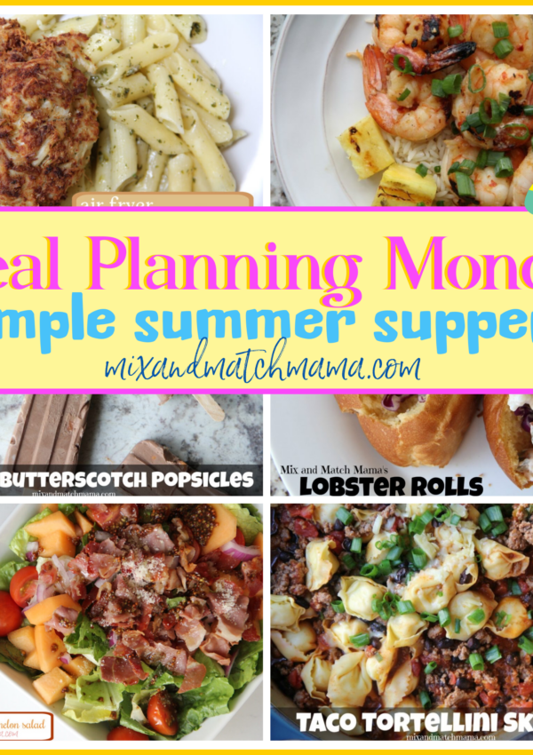 Hey there, Monday!! Today, I have five simple suppers plus one dessert that’s perfect for the summer. Grab your pen, paper and coffee and get to writing down your grocery list. We’re making everything extra delicious this week starting with……