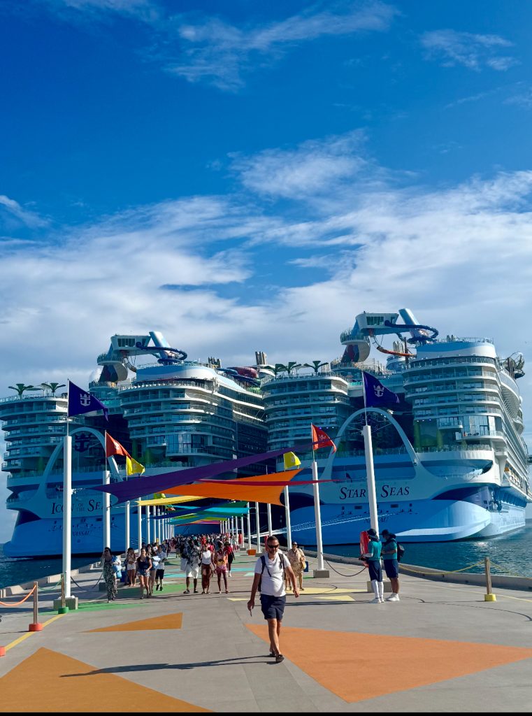 The two largest ships at port side by side. What a sight!! The Icon and the Star are almost identical. Next year, the Legend of the Seas debuts and will be the third ship in this Icon series.