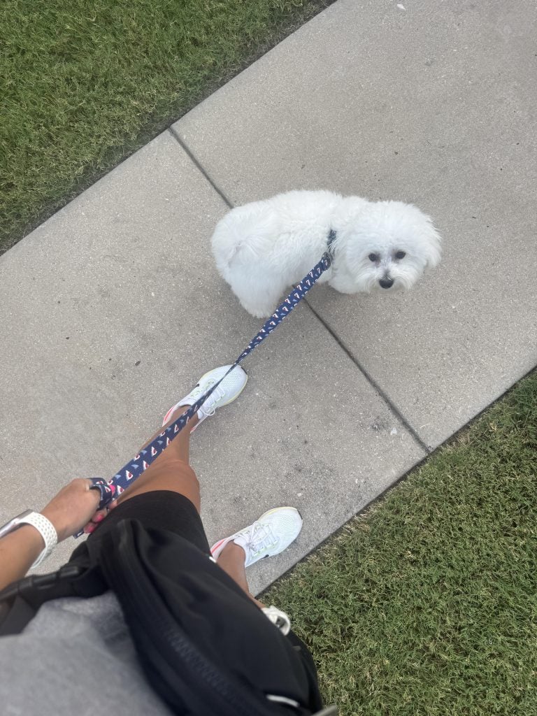 And we’re off for a walk! I try to walk all four dogs every day at the same time, but often, the three older dogs have to go later (after lunch) because they’re just not as peppy as early as this guy.