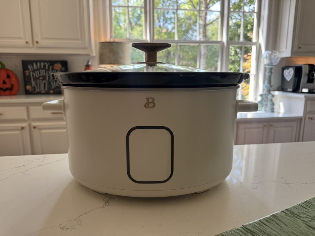 I never thought I’d use the word “beautiful” to describe a slow cooker, but that one is a beauty!