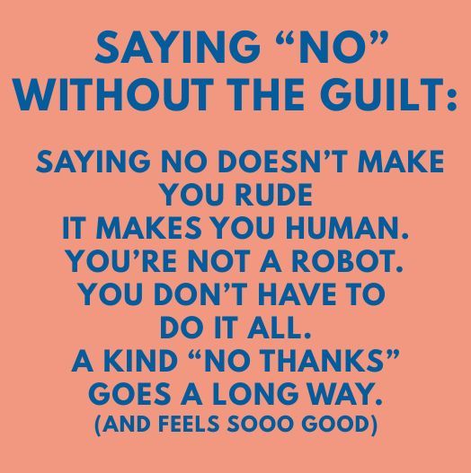 Thank you for the reminder that a “no” is okay. I need to work on saying no thank you with less guilt.