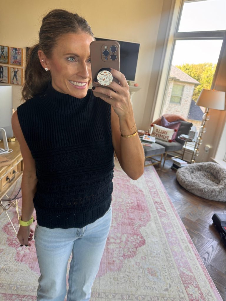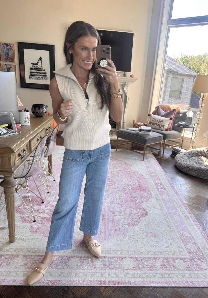 …I met my sweet friend (and Smith’s violin teacher) in downtown McKinney and wore THIS TOP with MY AMAZON JEANS and those MULES again.