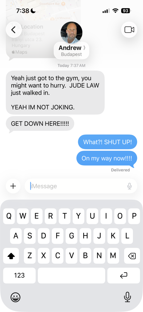 I would have peed my pants if I walked in that gym without prior notice of Jude Law being in there!!! Holy Moly Batman. That’s crazy!!!
