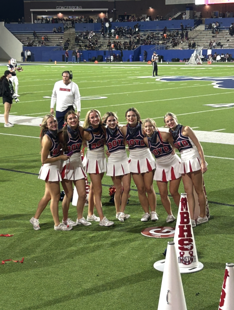 …our Boyd Broncos had their last football game on Thursday night. All five Shulls were there to celebrate and cheer on our favorite cheerleader and her friends.