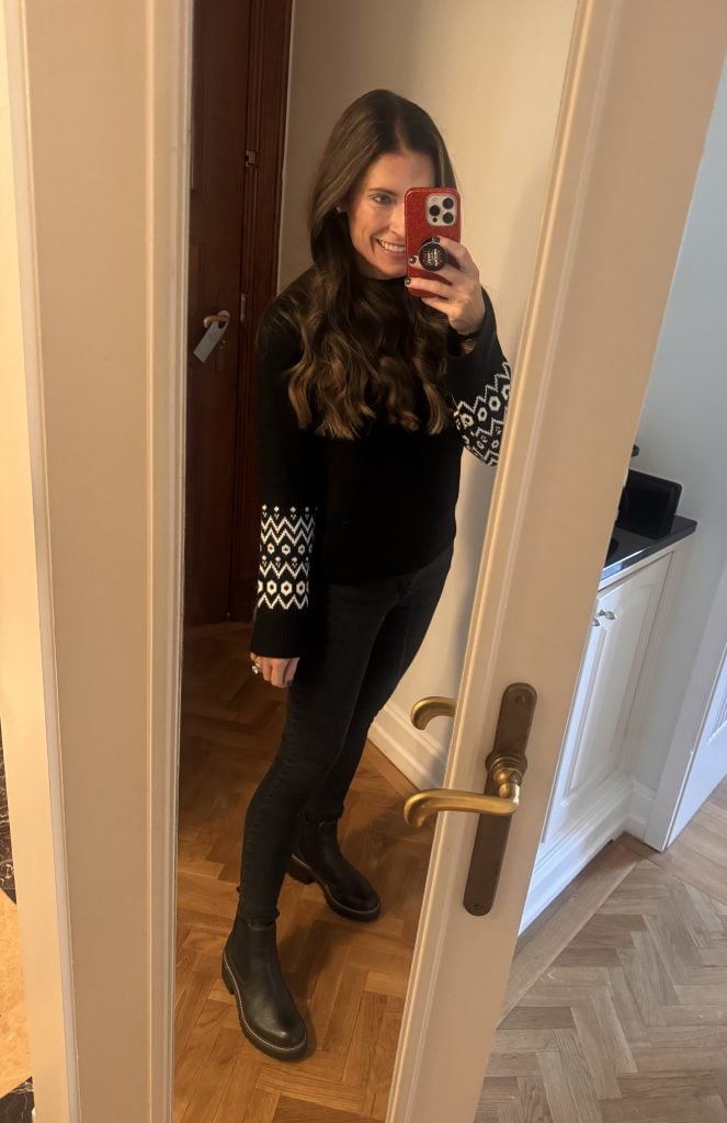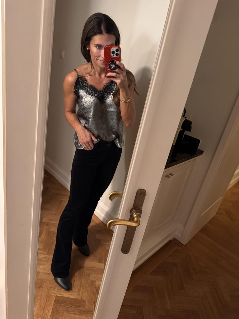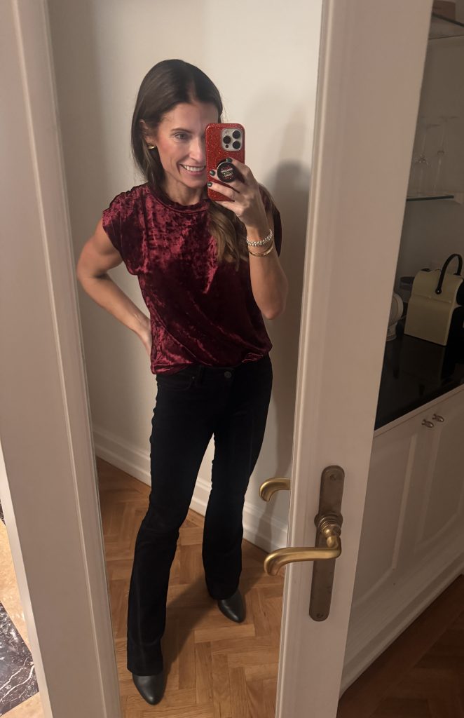 On this night in Budapest, I wore THIS FESTIVE TOP, MY CORDUROY PANTS, and BOOTIES.