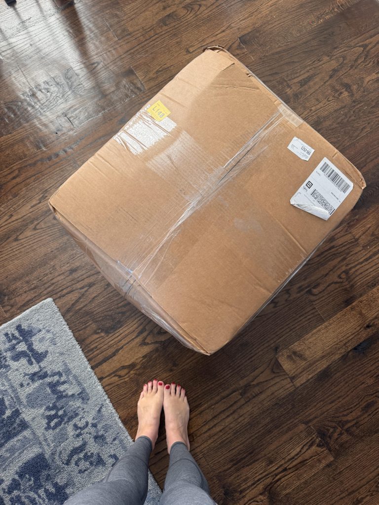 It arrived when I was home by myself but it wasn’t too heavy for me to carry upstairs. I opened it and…FLUFF!
