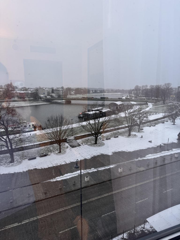 We woke up on this January 2nd to a snowy Krakow, Poland. This was the view from my hotel room.