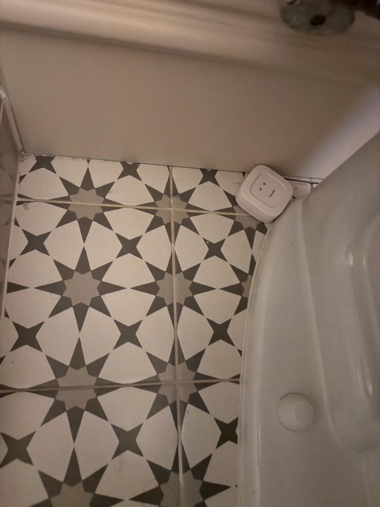 I have been talking about these little water detection sensors now for over five years. THEY WILL SAVE YOUR HOUSE! They’ve detected water at my house and certainly saved mine. Over the years, I’ve had SO MANY of you say the same thing. See how tiny it is back there? Just stick one by anything that could leak (toilets, sink, washing machine) and get texts alerts the second it feels even the smallest drop of water.