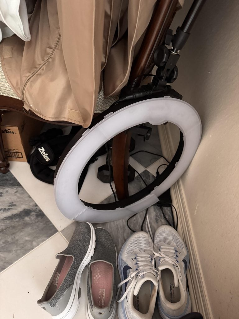 I’m pretty sure I bought this during COVID when everyone else was also buying ring lights. I don’t think I’ve used it in five years. I should probably re-home it…but for now, it’s in my coat closet.