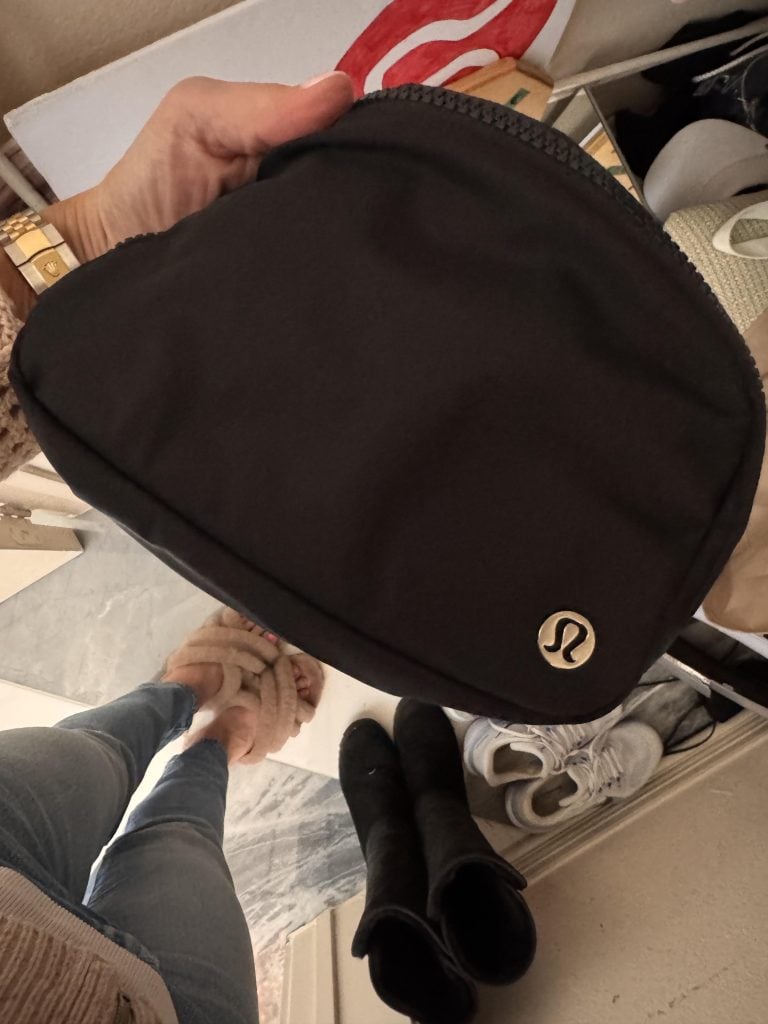 I keep a belt bag in the closet and use that each day too for my walks. I can put my phone inside, little bags to pick up after the dogs, etc. I just keep it right there and slip it on as I leave.