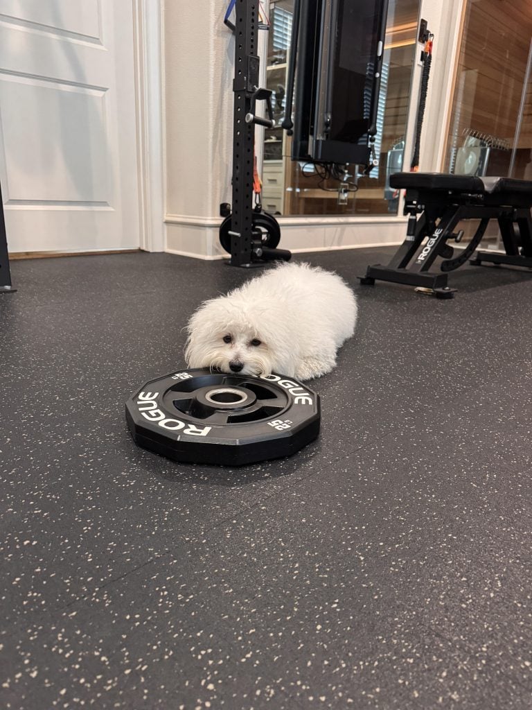 While the other cotons are more active, this dog is more chill. The other cotons get up with me at 4:30 AM and start their day. Frenchie wanders down stairs closer to 10:30 ready to start hers.