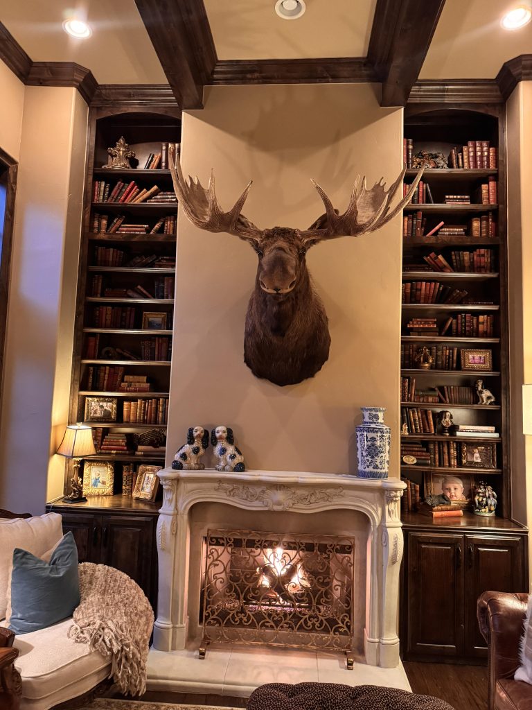 Spoiler alert, not much has changed in this room over the years. When we were building our home 13 years ago, I knew I wanted a room up front with bookshelves to the ceiling, a fireplace, and cozy seating for reading. If I had to pick a favorite room in my house, I’m pretty positive this would be it.