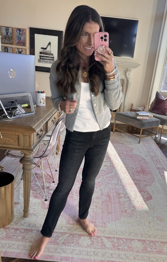 My hair is a VERY dark brown (my kids always get confused when I say this because they would say it’s black…but it really isn’t ha), and the grays are coming in fast and furious and I’m trying to embrace it because I don’t want to deal with the upkeep. I get compliments on the color, but it still feels jarring to look in the mirror and see so much white! (Dang genetics that my older sister has less gray!) Question for you – I’ve started HRT and am maybe seeing some hair loss (I think from the testosterone) and was thinking about trying Nutrafol. I think you used to have a coupon code (maybe I’m wrong) – do you anymore?
