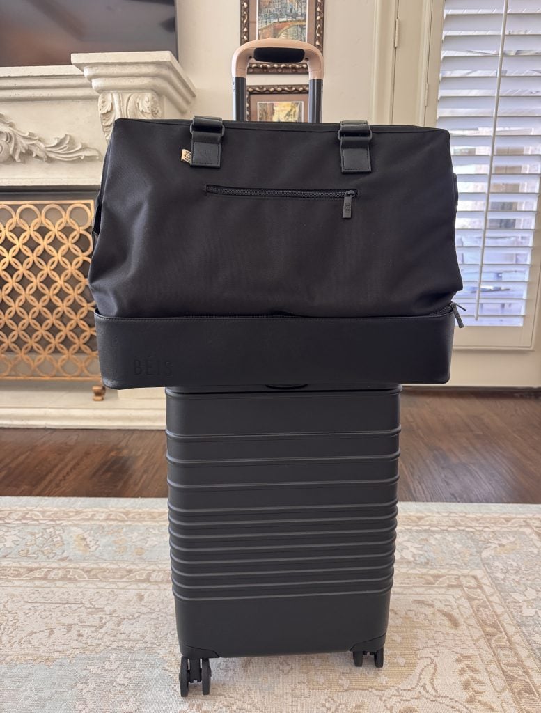 I’ve had my weekender bag for a few years now and it’s my most used bag!! It fits SO much! I have a NOBL rolling carry on, (similar in size to BEIS) and between my NOBL and weekender I fit everything I needed for a week at Disney over Christmas. The bottom pocket of the weekender is my favorite shoe storage spot. My next goal is to configure everything I need for my 2 week trip to Europe coming up in May, but that might be pushing it LOL!