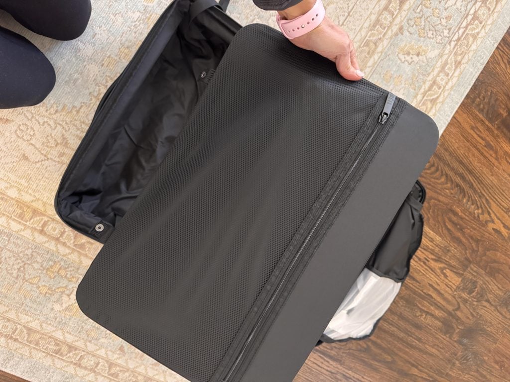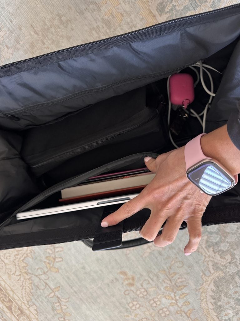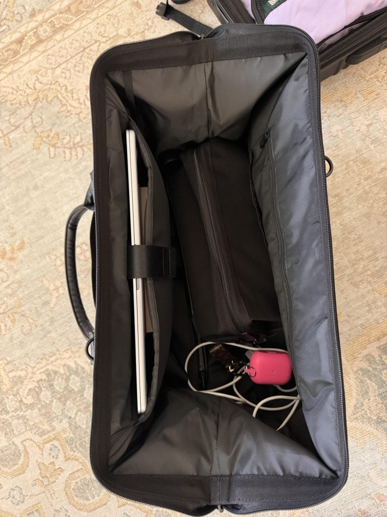 …when I sat down, I could unzip the tote and easily see everything without even taking it off the THE CARRY-ON ROLLER.