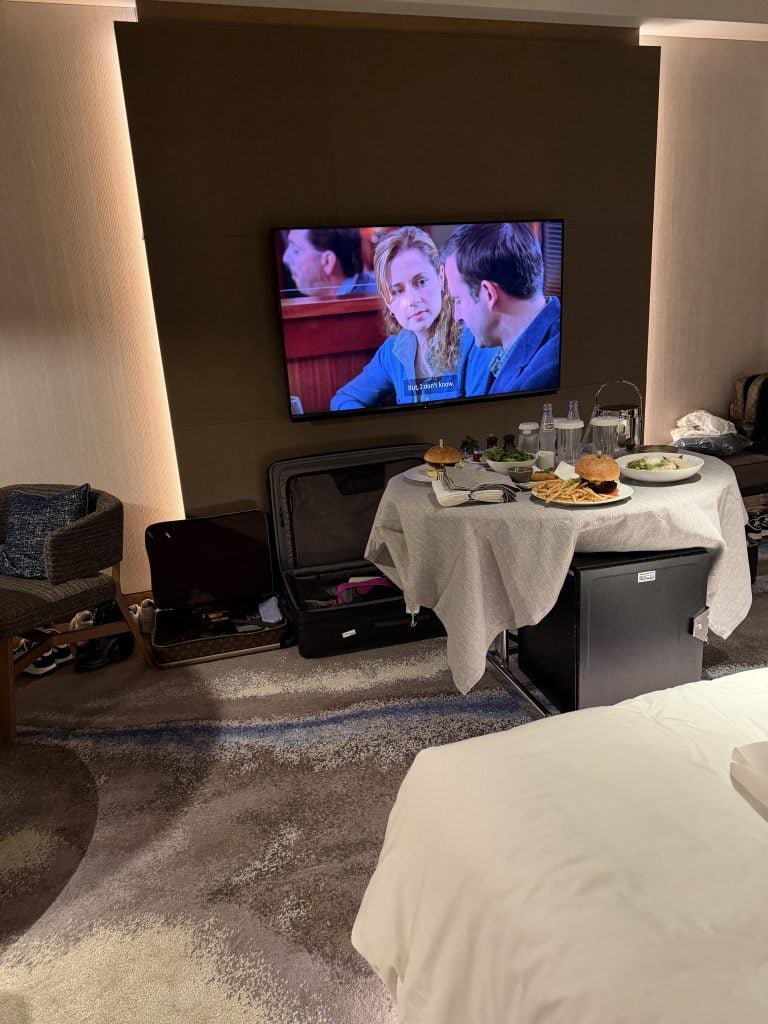 Well, it was 7:00 PM, so we all showered, ate room service, watched The Office, and went straight to bed…