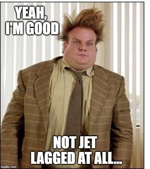 Good Morning bright and early. I can only with empathize with you on the jet leg. My husband had to travel to and from Japan for work every month for at least a year. He would be gone two weeks and home for two weeks at a time. Needless to say, we racked up alot of frequent flyer miles. But yes. The jet leg was hard on him.