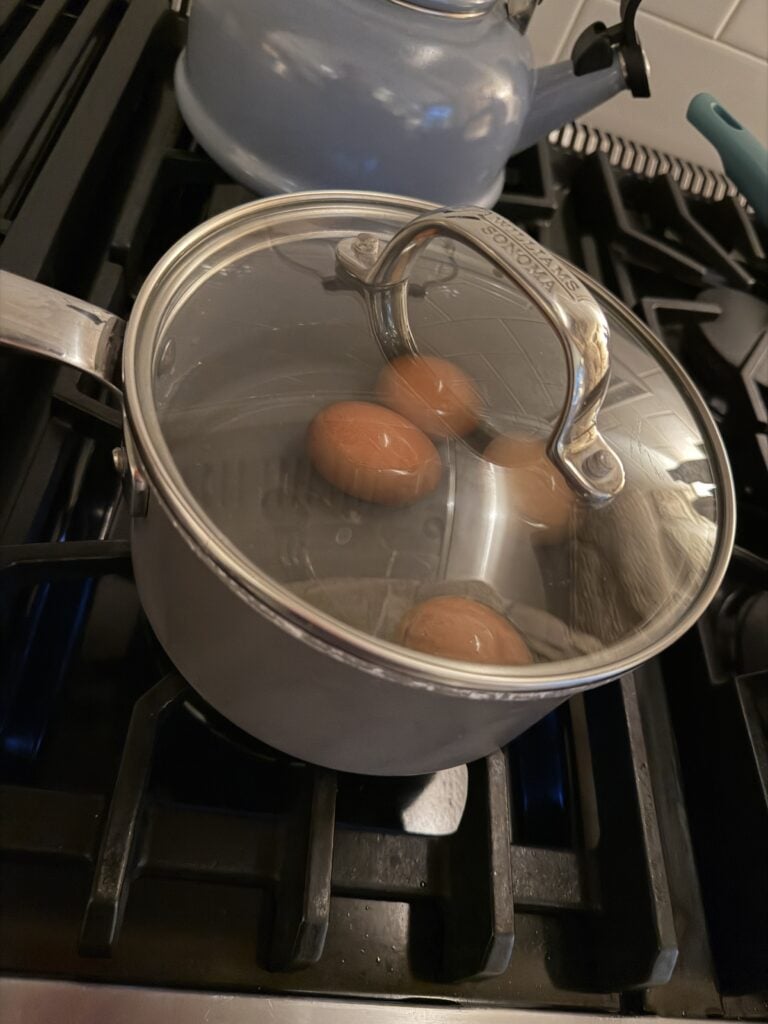 …and proceeded to boil some eggs for my lunch later in the day as I “piddled” around my house and got Ashby and Mades up and going.
