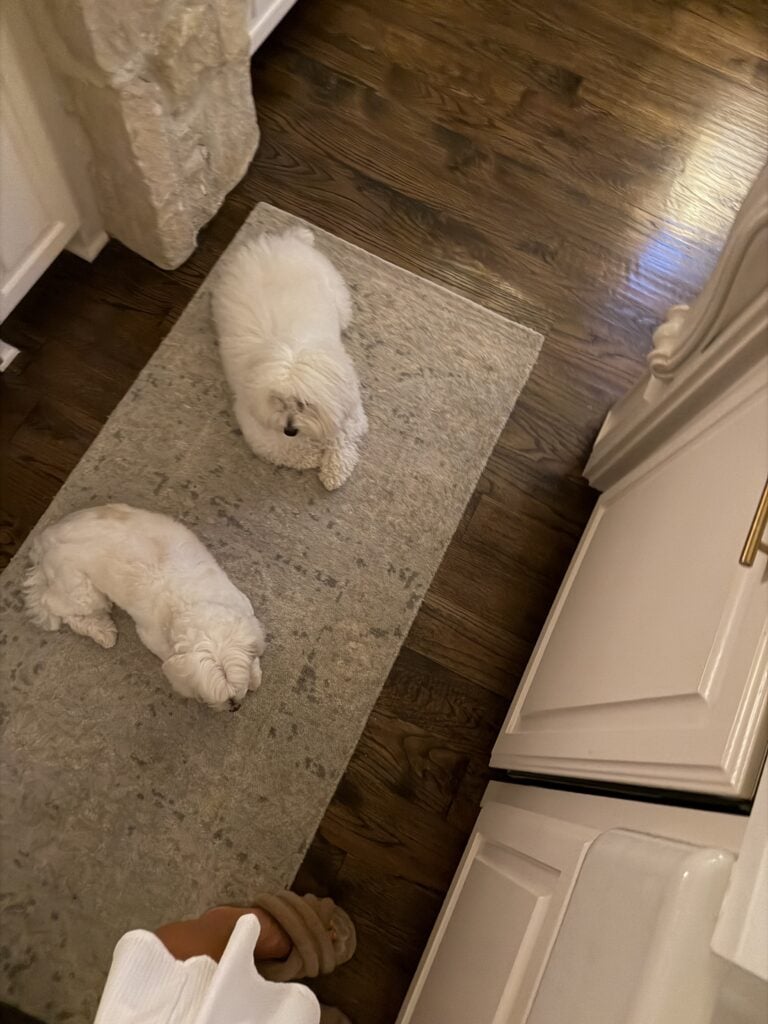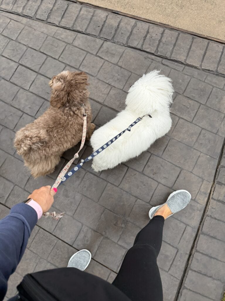 …up next, it was time to take the dogs on a walk. On this day, it was just these two as Frenchie was still sleeping and Poppy didn’t seem interested.