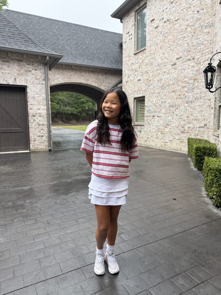 On Wednesdays, she has tennis after school, so she tries to dress for both 🙂 .