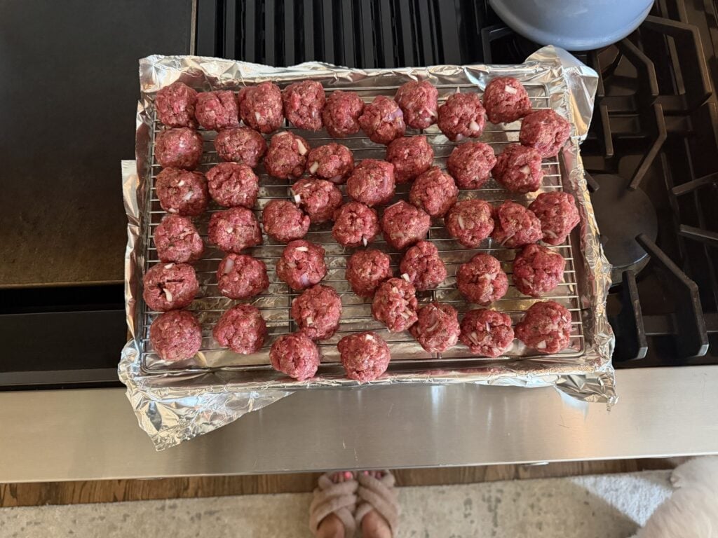 …I made my EASY BAKED MEATBALLS but added a bit of shallot to them this time instead of basil…