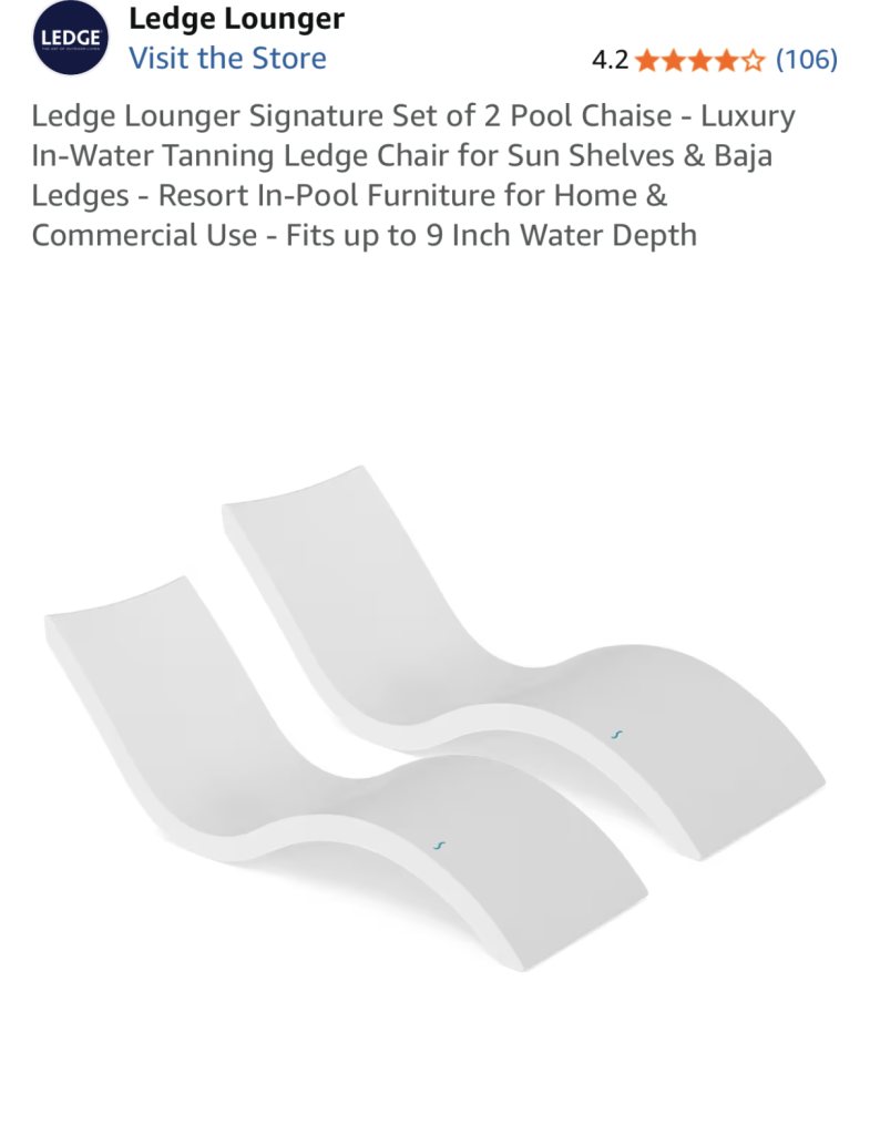 We bought this set of two LEDGE LOUNGERS for our pool. It gets so hot outside in Texas, that this year, we added these to make being by the pool a bit cooler. This was the exact brand we saw on our cruise the day we visited their private island. We loved them, so we bought them too. The set is pricey, but they’re very durable and don’t float in the water (so they stay grounded even when a bit submerged).