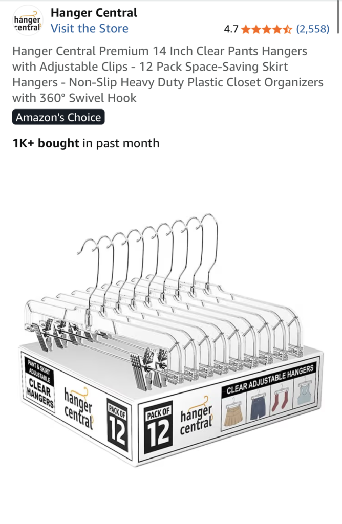 CLEAR CLIP HANGERS for the win especially this time of year when I’m wearing skirts and shorts.