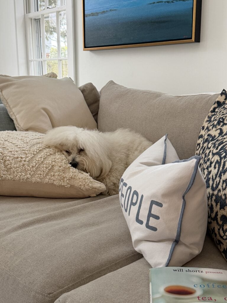 …that cute “beach people” pillow you see in the background. Sweet Charlie.
