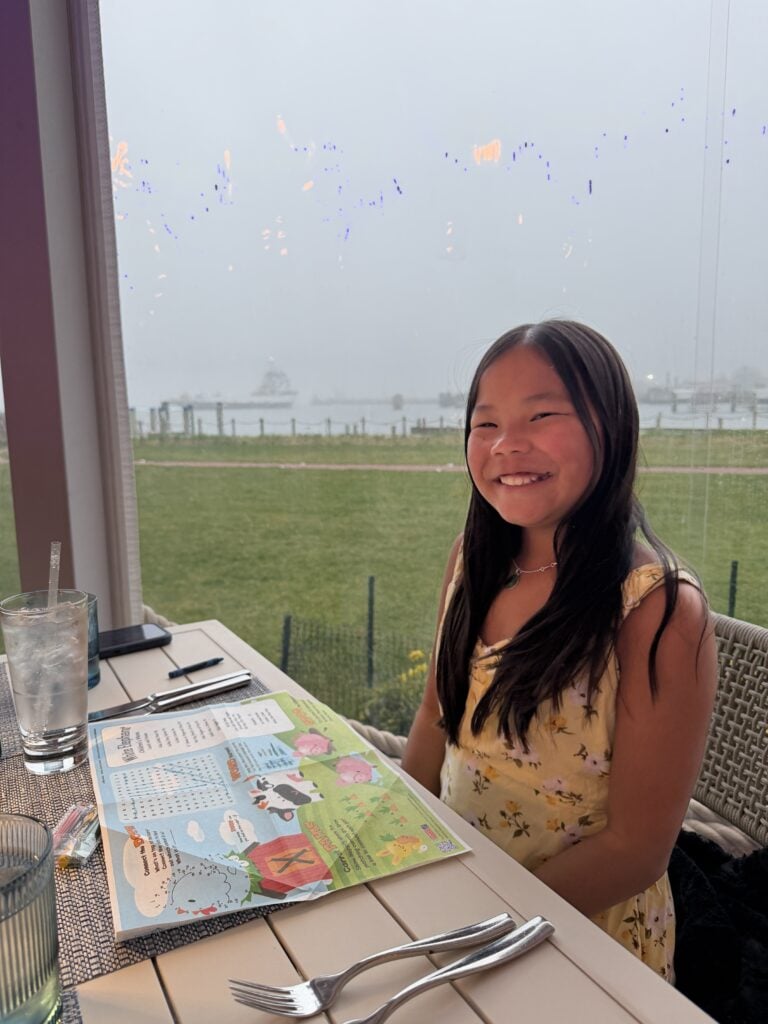 …breakfast on the patio with Mades (and Charlie who was under the table).