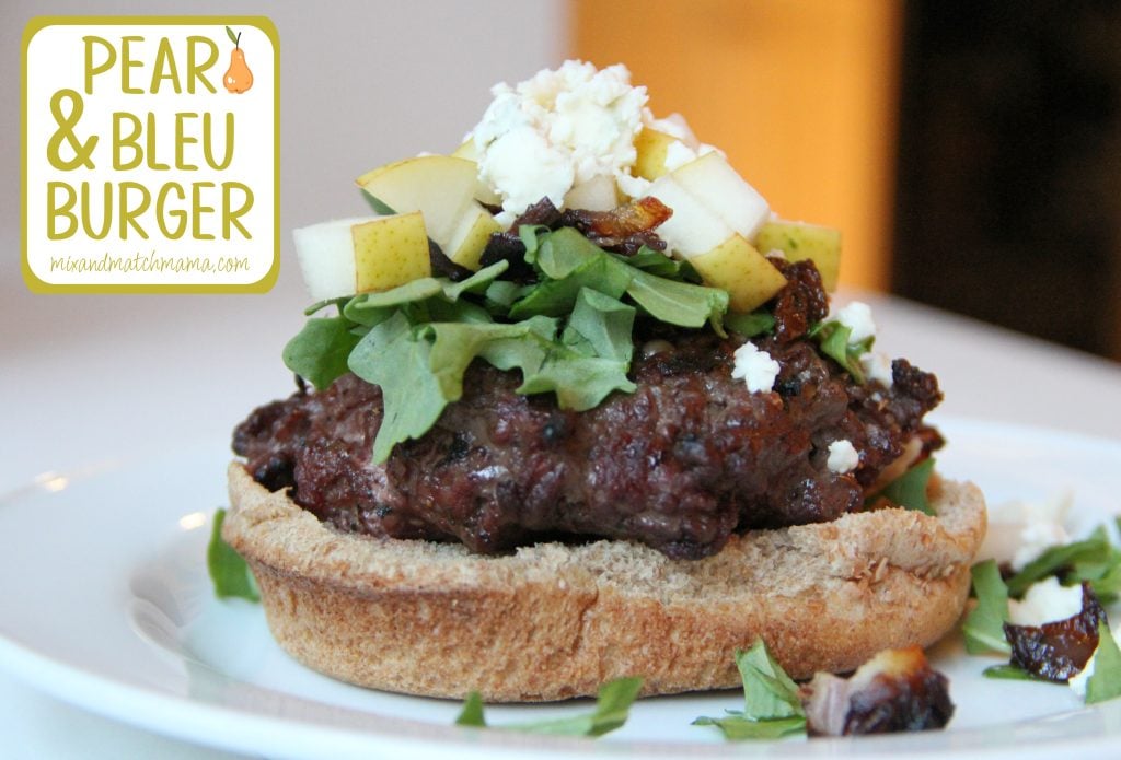 When the weather gets warm, we get out on the patio and grill burgers for dinner. I’ll take a burger any way you hand it to me, but at home, I often make them “knife and fork style” just so that I can pile it with extra toppings. On this night, I added ARUGULA + ONIONS + PEARS + BLEU CHEESE. Delish! xx