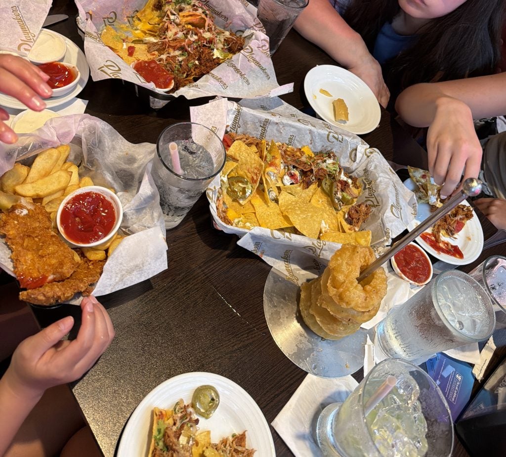 Before we knew it, we were back on board and HUNGRY! The six Shulls headed straight to the sports bar on board…