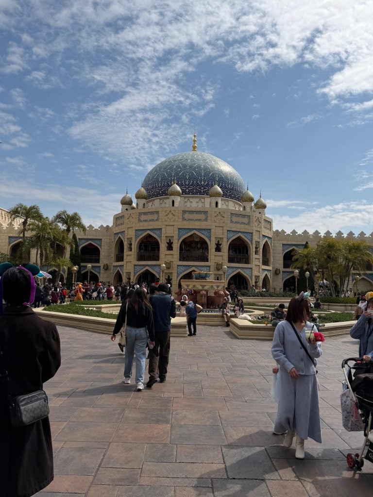 Tokyo Disney had all of the Disney charm without just repeating what you see at the other parks. Some of the rides were similar, but many were original to that park. They also had different “neighborhood” themes as well. I showed you Portofino and the Italian section and then this was the Arabian coast from Aladdin. All so fun!