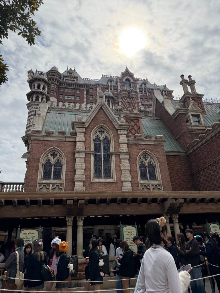 …Tower of Terror. This is one of our favorite rides at Walt Disney World, so of course, we had to ride it in Japan too. We could not stop laughing because it felt so much scarier when everything was being spoken in Japanese. This ride tells you a little spooky story as it takes you up and around (before it drops you), and since we couldn’t understand the story, we didn’t know when the big “drop” was going to happen. It made it fun!