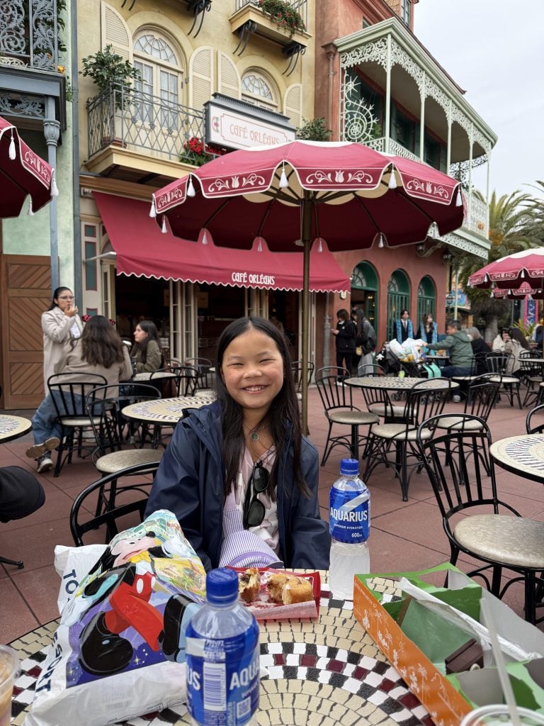 Believe it or not, after that ride, we were ready for another snack, so we sat down and grabbed a quick one at Cafe Orleans…